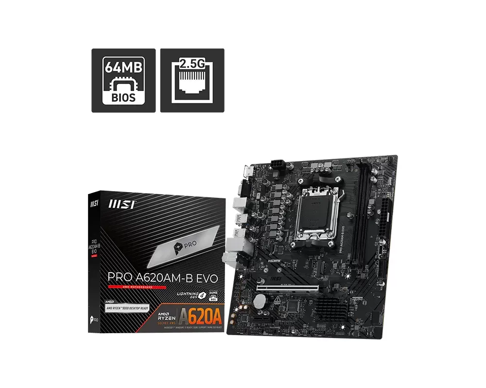 Placa de baza MSI PRO A620AM-B EVO, AM5, mATX, DDR5, AMD A620