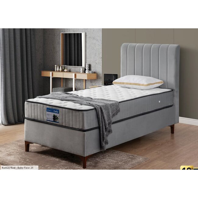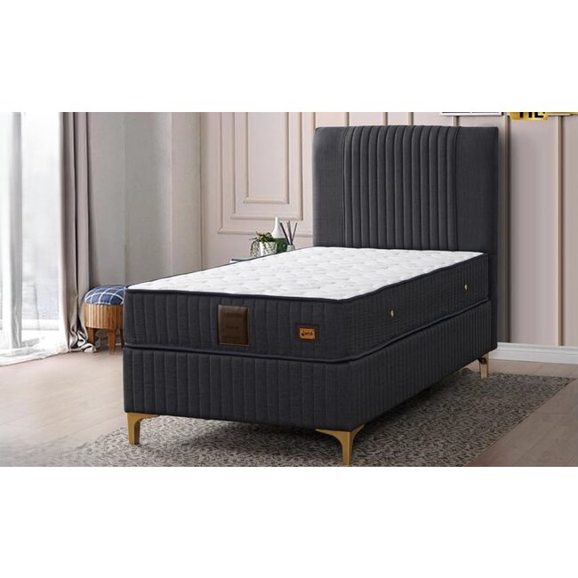 Set Pat + Saltea Selena, design modern, cadru rezistent, tehnologie arcuri împachetate, saltea inclusă, 100x200 cm, gri