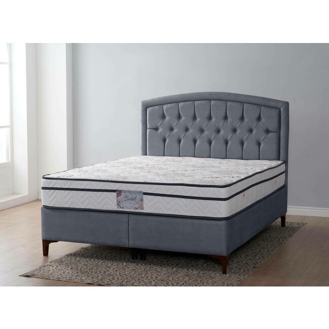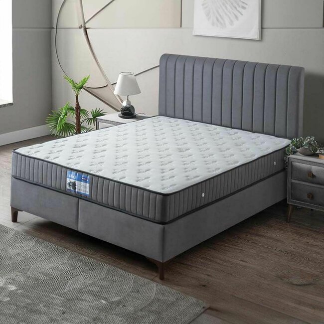 Set Pat + Saltea Bellagio, sistem ortopedic, saltea inclusă, confort ridicat, 160x200 cm, gri deschis