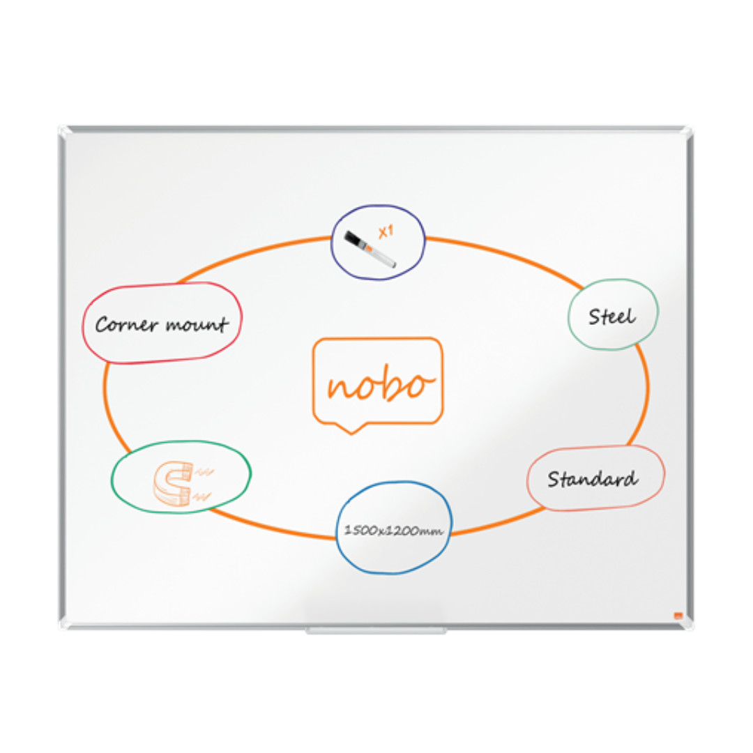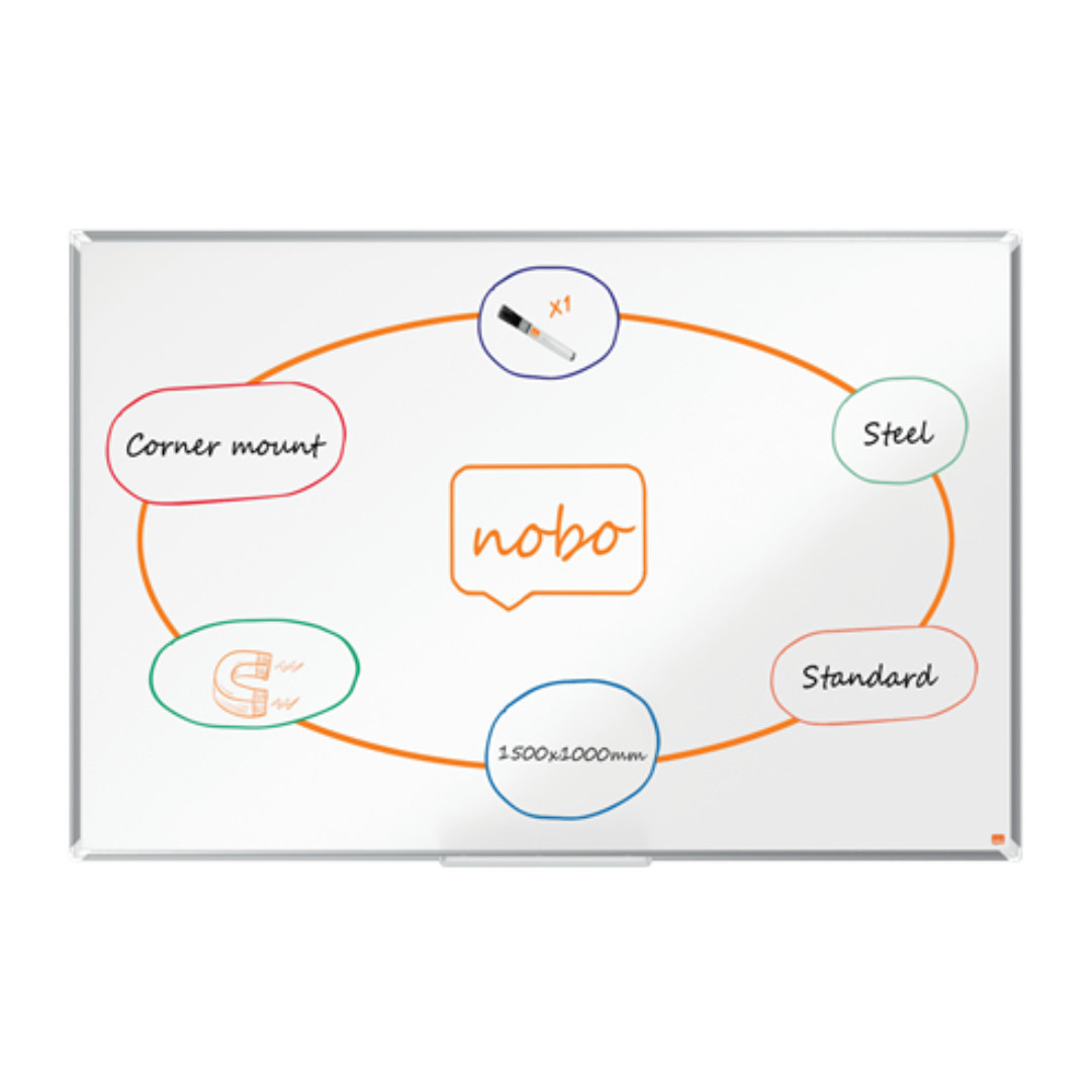 Tabla NOBO Premium Plus, otel lacuit, 150x100 cm, magnetica, include marker si tavita, alb