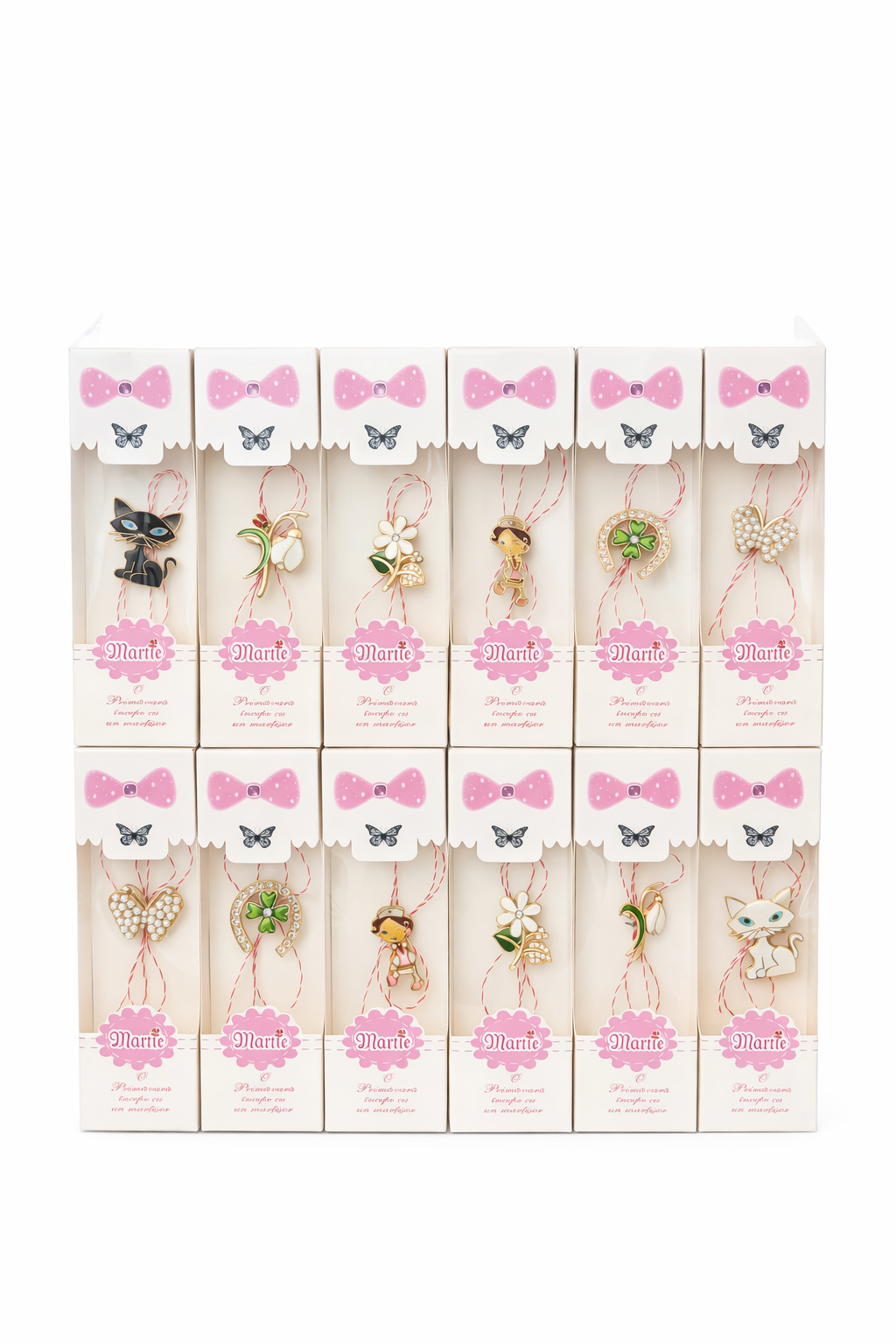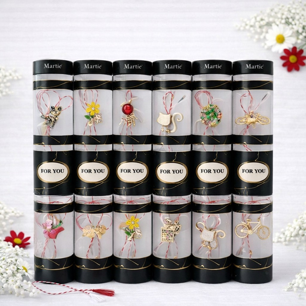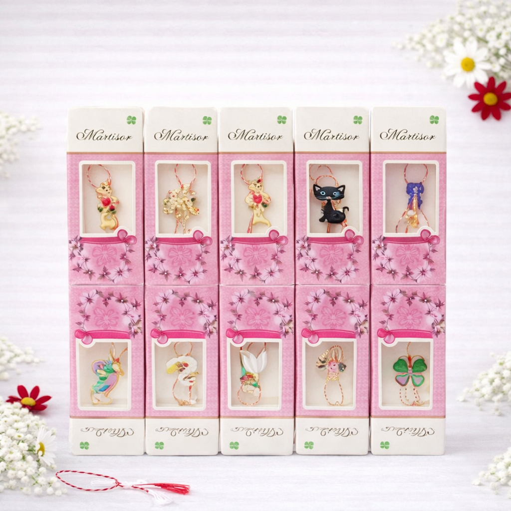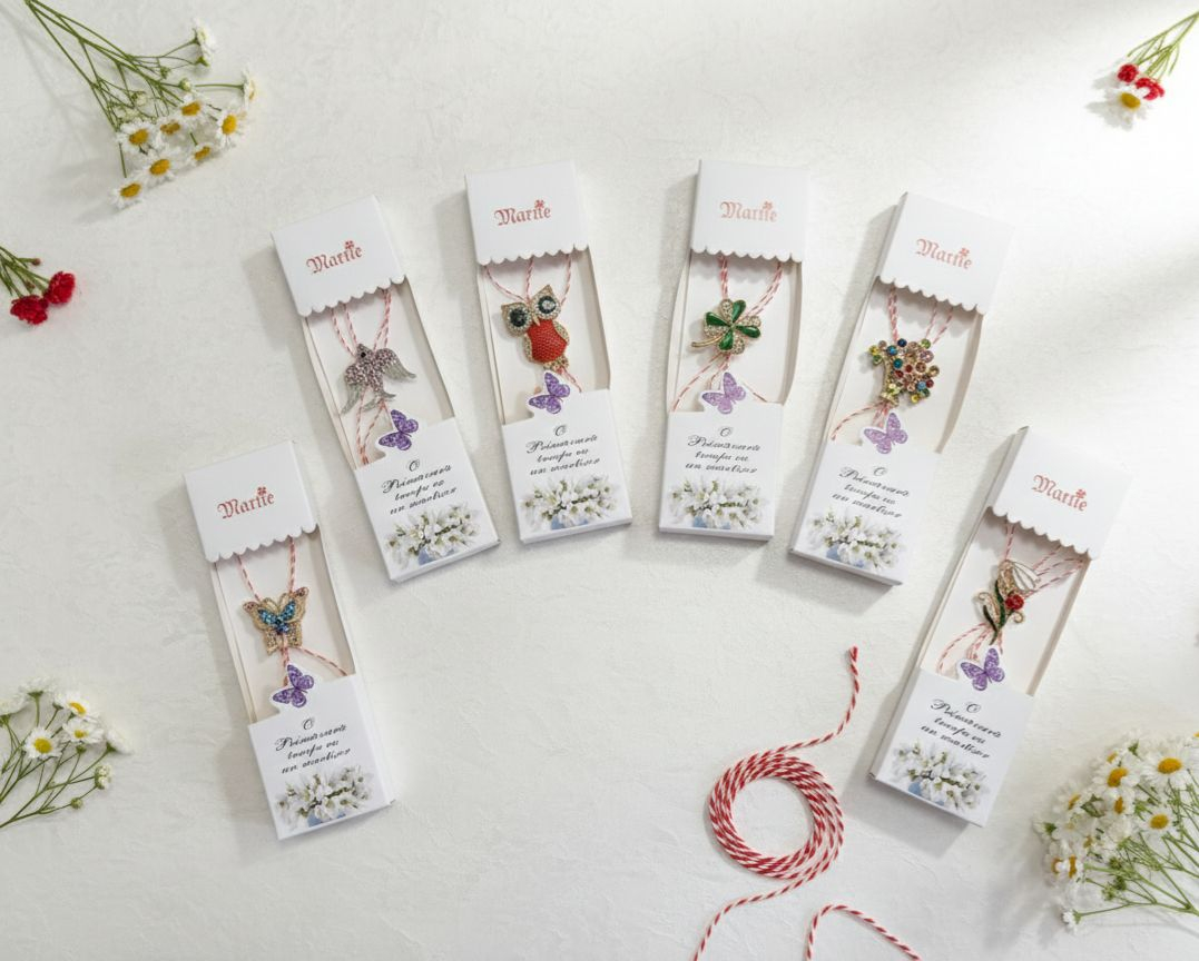 Set 100 de martisoare modele combinate, ambalaj individual elegant, 9x5cm