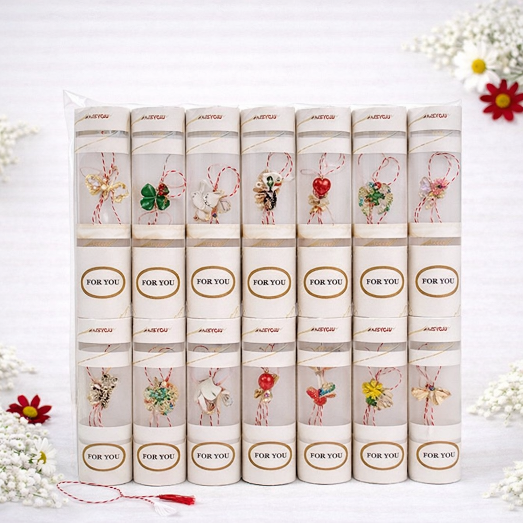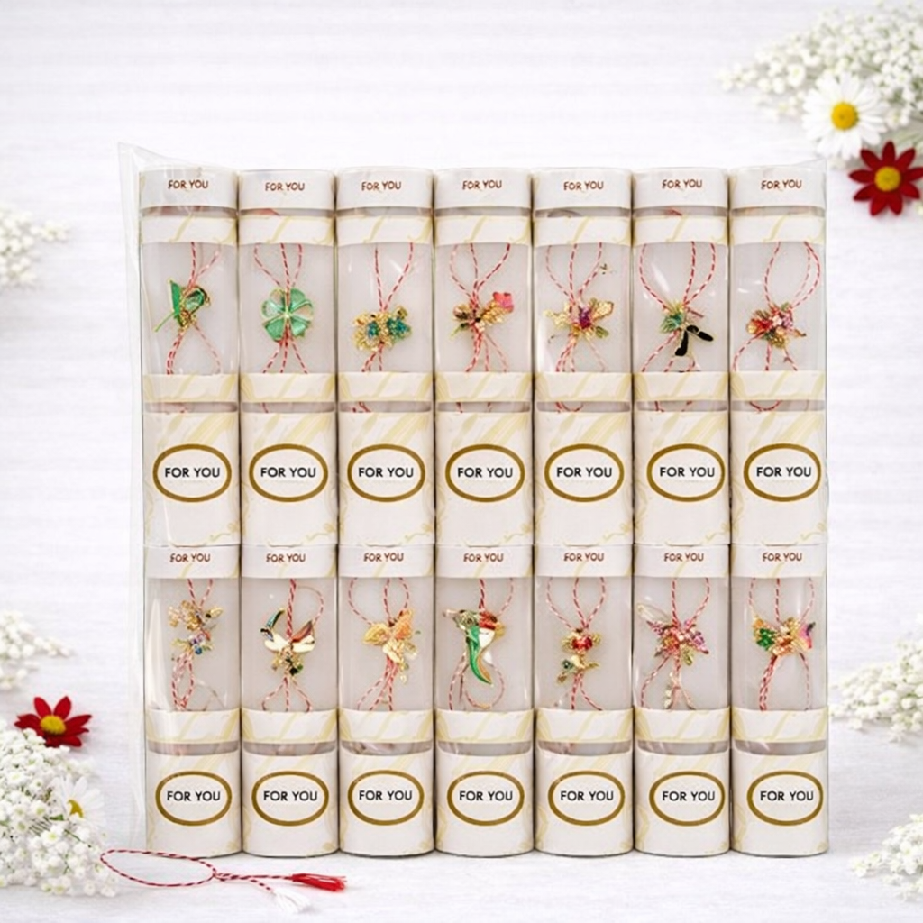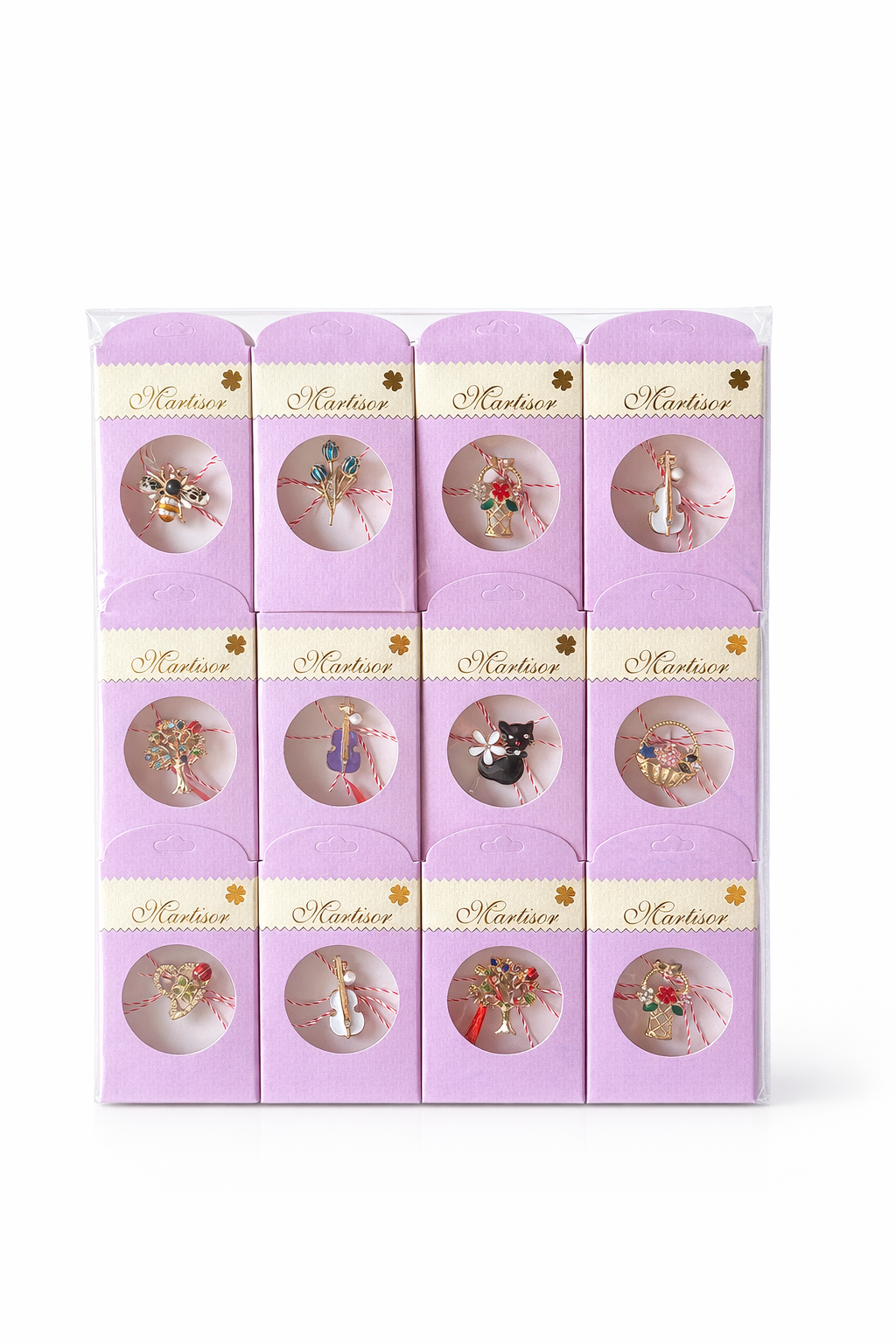 Set 100 de martisoare modele combinate, ambalaj individual elegant, 9x5cm