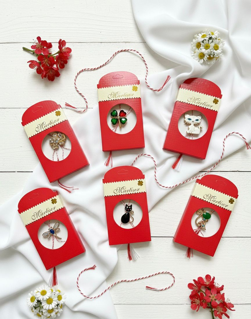 Set 30 Brose Martisor in Cutie Speciala cu Mesaj, Cadou 1 Martie 10x6 cm