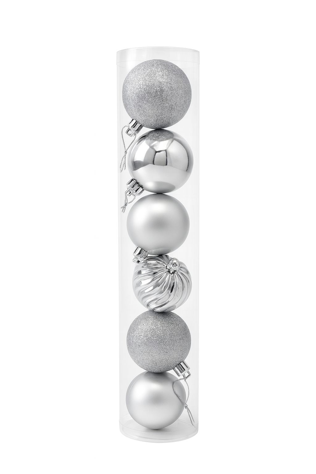 Set 7 globuri Craciun argintiu 40x6 cm finisaj mat lucios sclipici