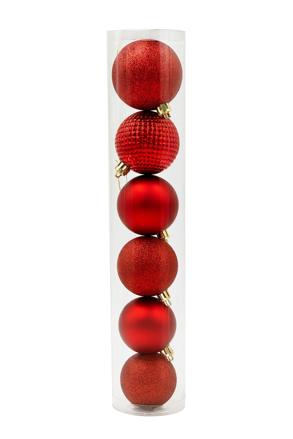 Set 7 globuri Craciun rosu intens 40x6 cm finisaj mat lucios sclipici