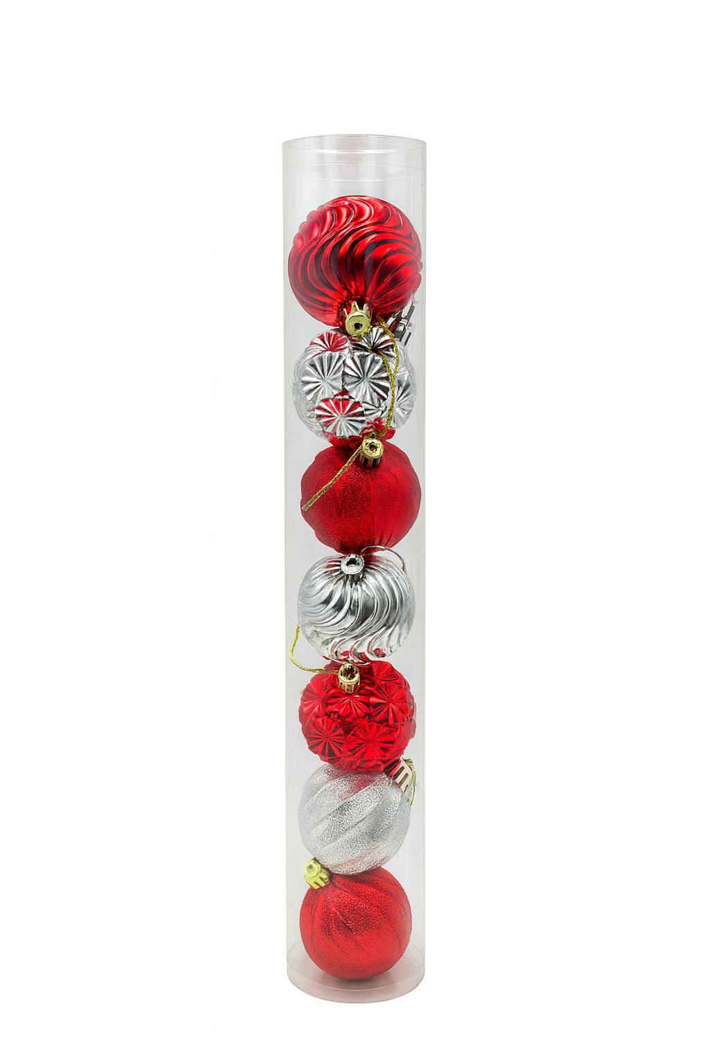 Set 7 globuri Craciun rosu si argintiu 40x6 cm finisaj mat lucios sclipici