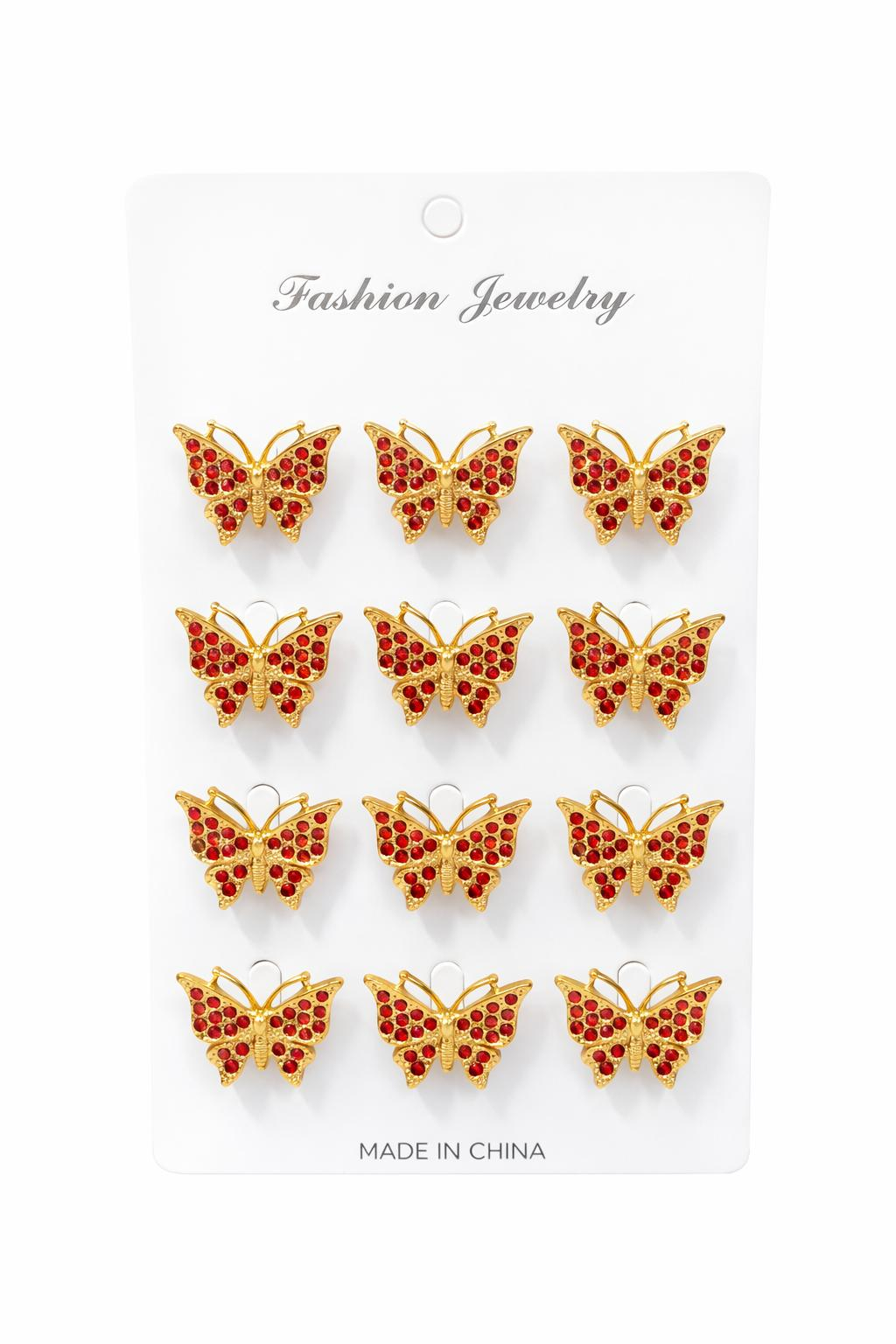 Set 12 brose Martisor pe carton prezentare, 17x10 cm, Cadou 1 Martie, Fluturi cu strasuri
