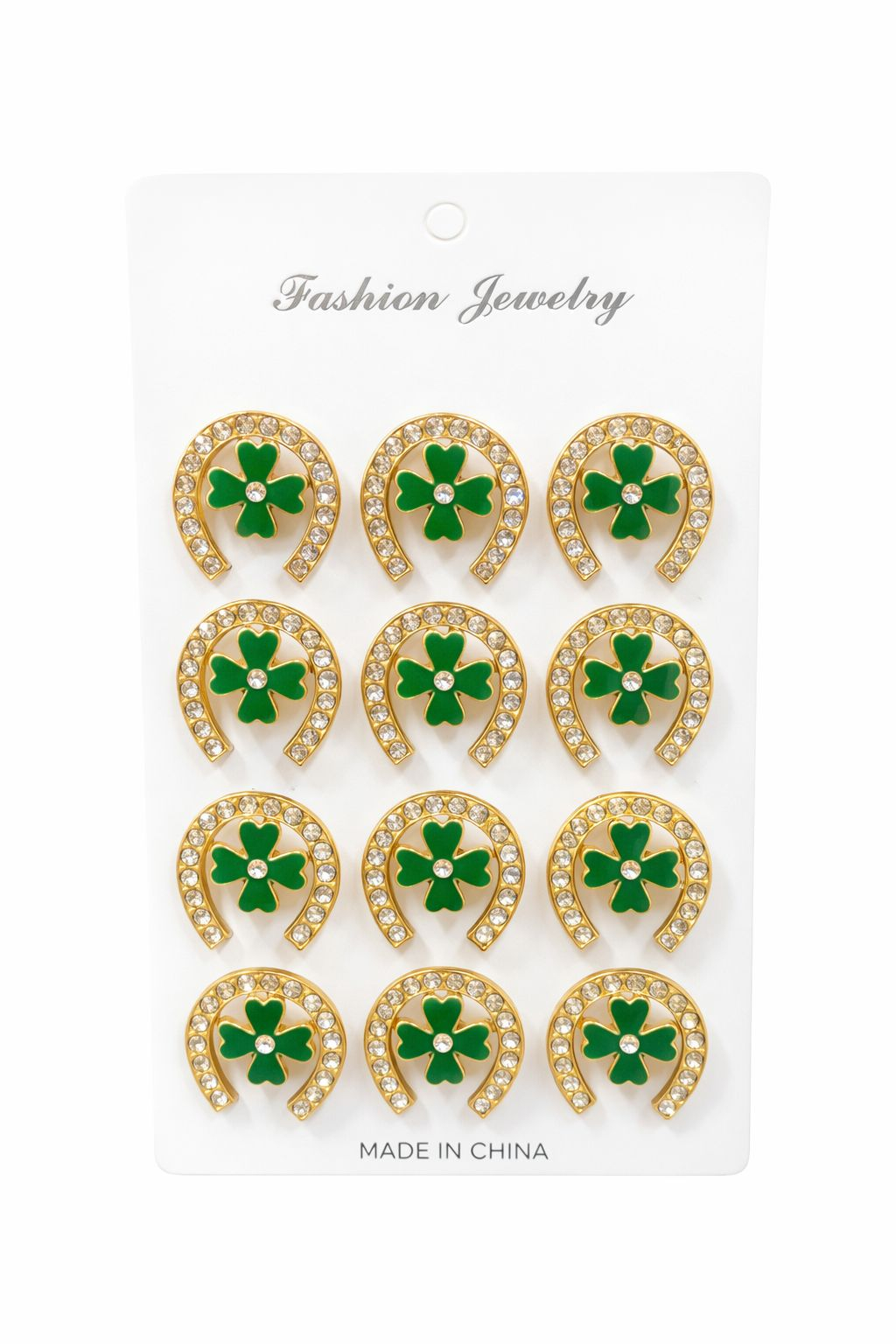 Set 12 brose Martisor pe carton prezentare, 17x10 cm, Cadou 1 Martie, Potcoava cu trifoi