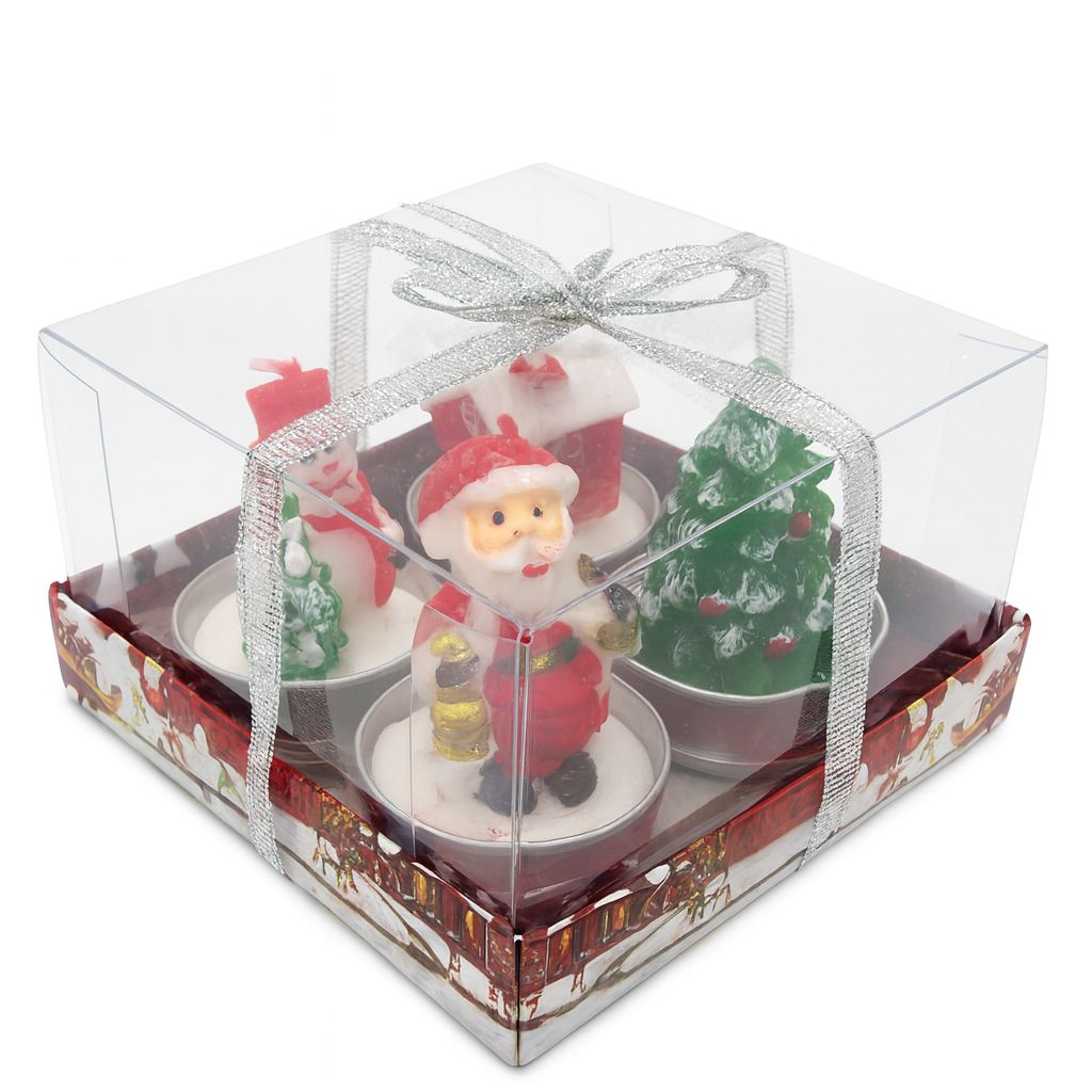 SET LUMANARI DECORATIVE CRACIUN IN CUTIE TRANSPARENTA CU FUNDITA