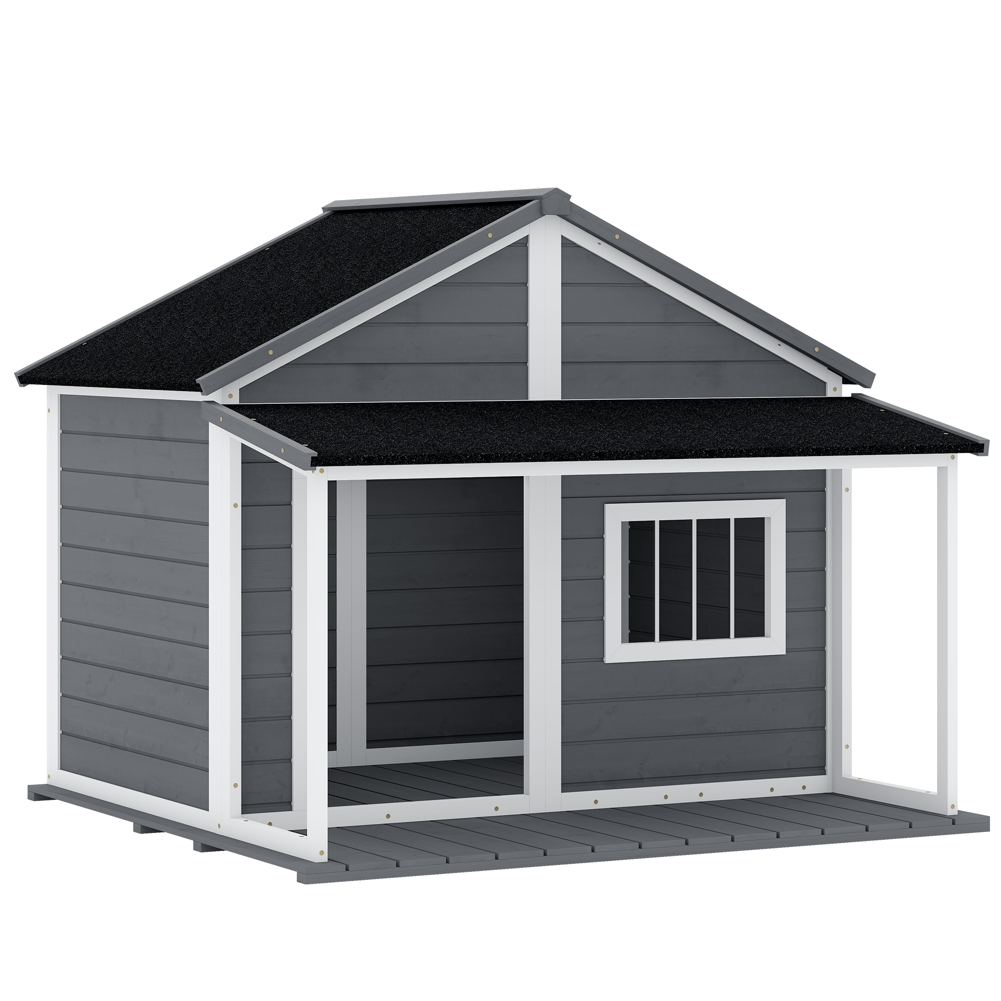 PawHut Căsuță pentru câini rezistentă la intemperii din lemn cu podea detașabilă, acoperiș din asfalt, fereastră rabatabilă 98x76x69,5 cm gri | Aosom Romania