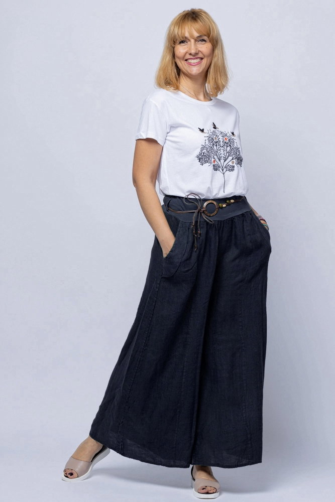 Fusta pantalon bleumarin inchis, casual, din in, cu o curea fancy Talie unica
