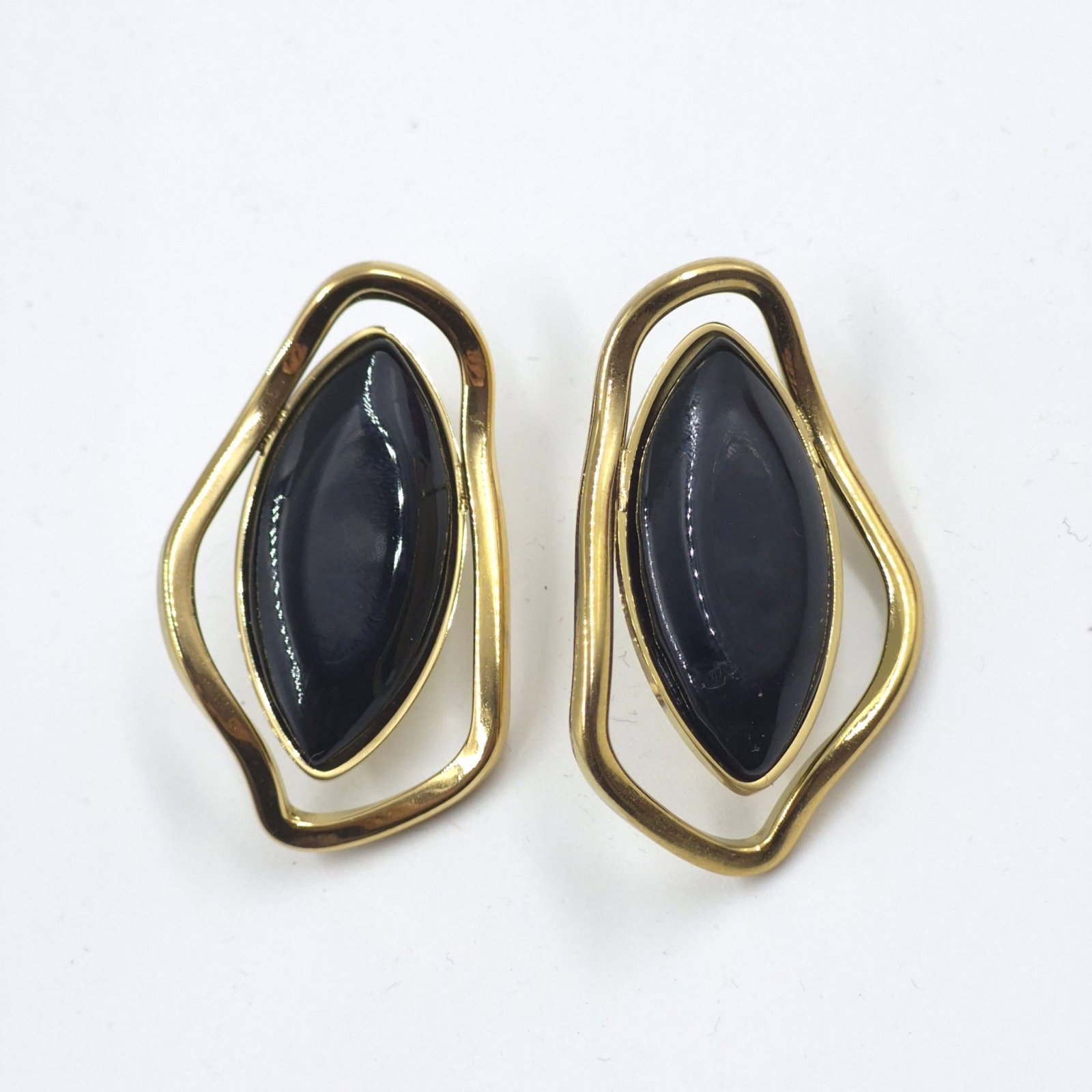 Cercei din otel inoxidabil negri Onyx Gold , cu accente aurii si design sculptural