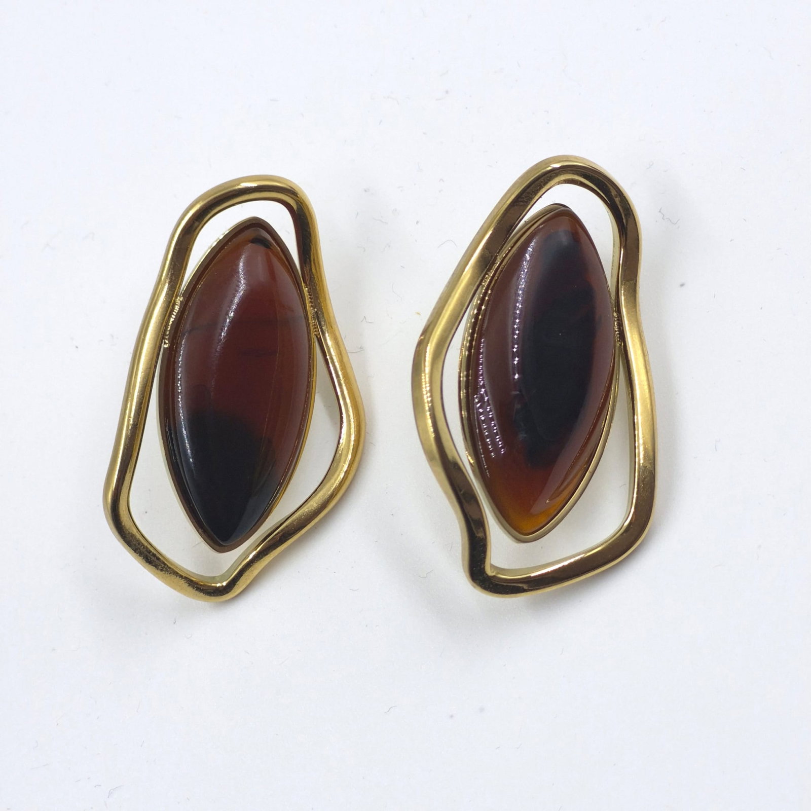 Cercei din otel inoxidabil maro Amber Gold , cu accente aurii si design sculptural