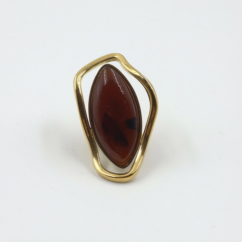 Inel reglabil Amber Gold, cu accente aurii si design sculptural