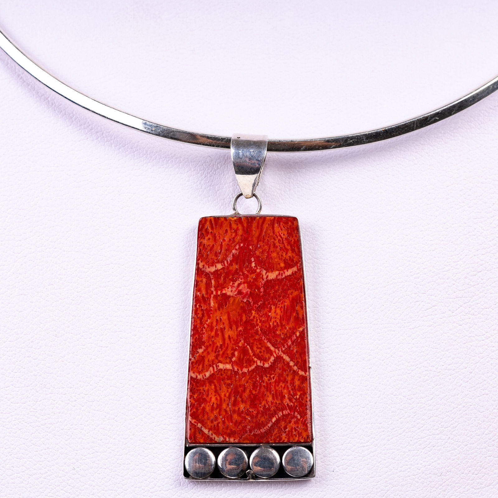 Pandant rectangular din argint 925 cu coral natural Marime unica
