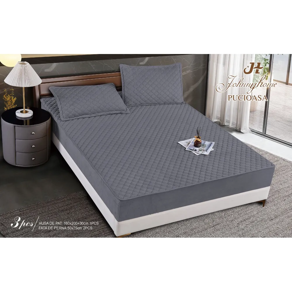 Topper Saltea/Husa de pat matlasata si 2 fete de perne din catifea, cu elastic, model tip topper 160x200 - JO843