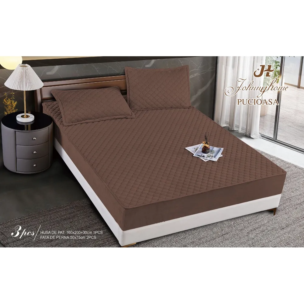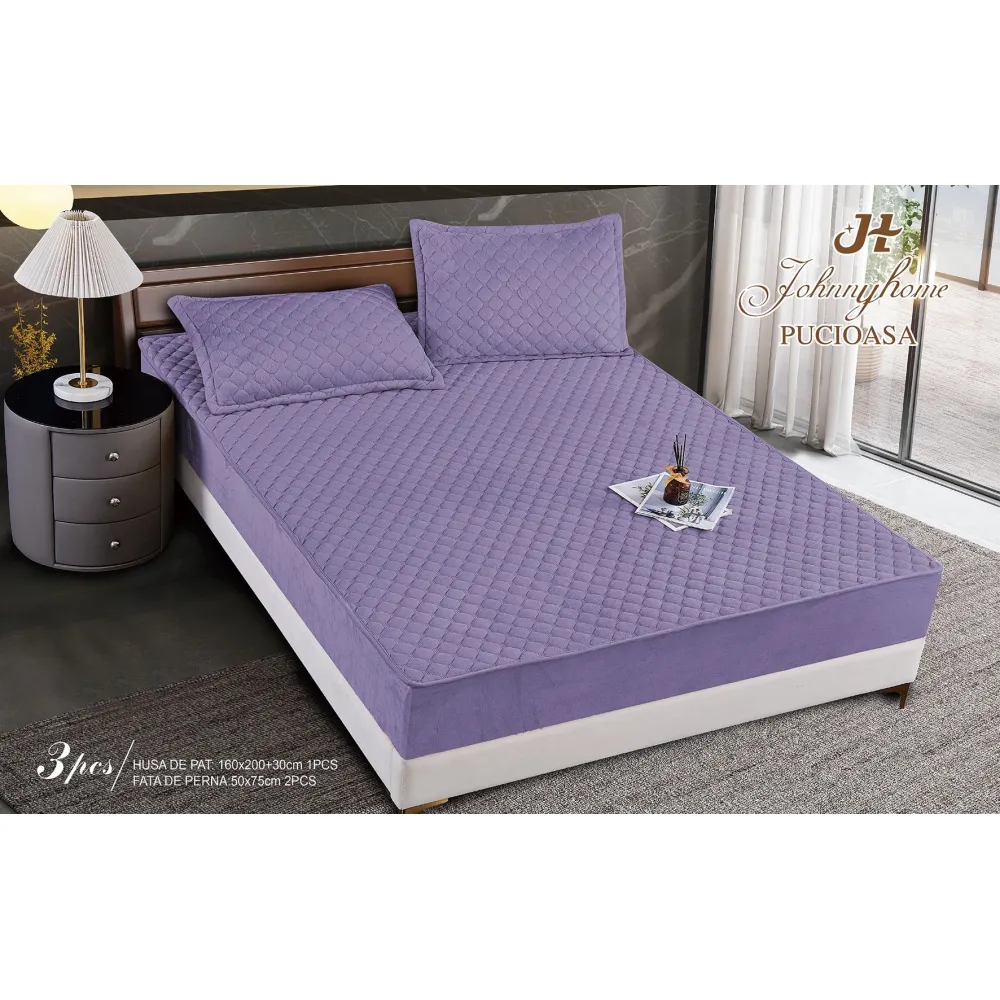 Topper Saltea/Husa de pat matlasata si 2 fete de perne din catifea, cu elastic, model tip topper 160x200 - JO842