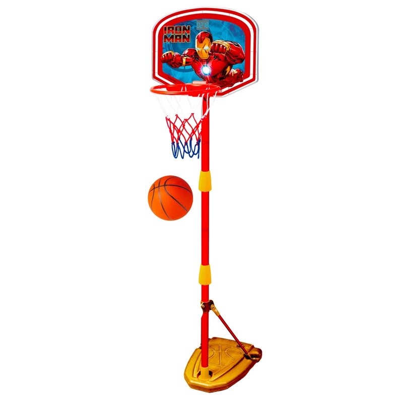 Set baschet, Stamp, Iron Man, Include minge si pompa, Inaltime reglabila: 100-160 cm, Baza stabila, Cu lumini si sunete, 3 ani+, Multicolor