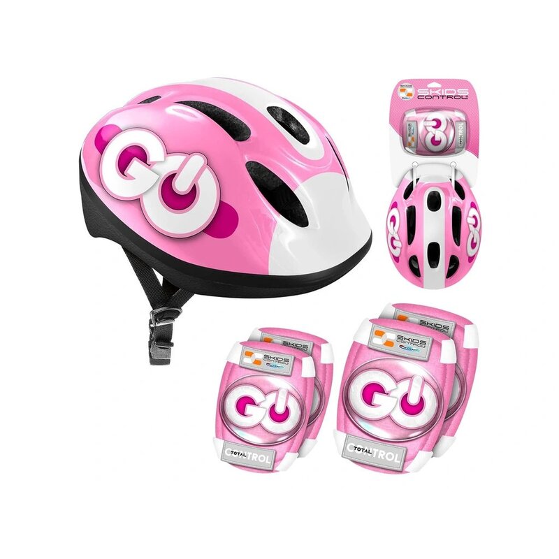 Set casca protectie, genunchiere si cotiere, Stamp, Skids Control, Sigure si confortabile, Reglabile, Conform cu EN1078, Marime 50/56 cm, 3 ani+, Roz