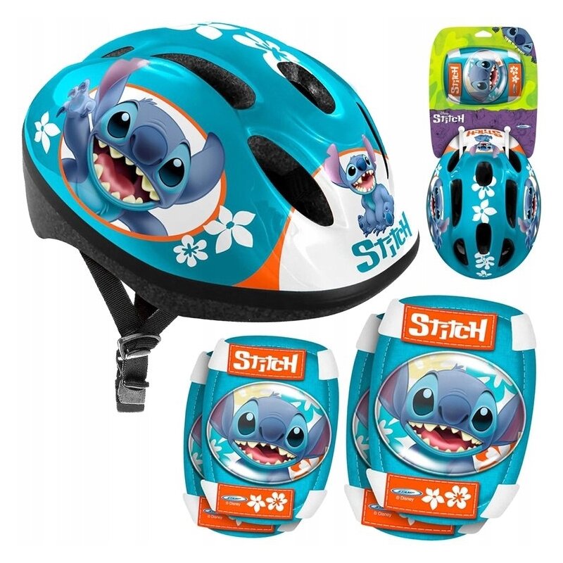 Set casca protectie, genunchiere si cotiere, Stamp, Stitch, Sigure si confortabile, Reglabile, Conform cu EN1078, Marime 50/56 cm, 3 ani+, Albastru