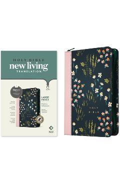 NLT Large Print Thinline Reference Zipper Bible, Filament-Enabled Edition (Red Letter, Leatherlike, Meadow Navy & Pink, Indexed) - Tyndale