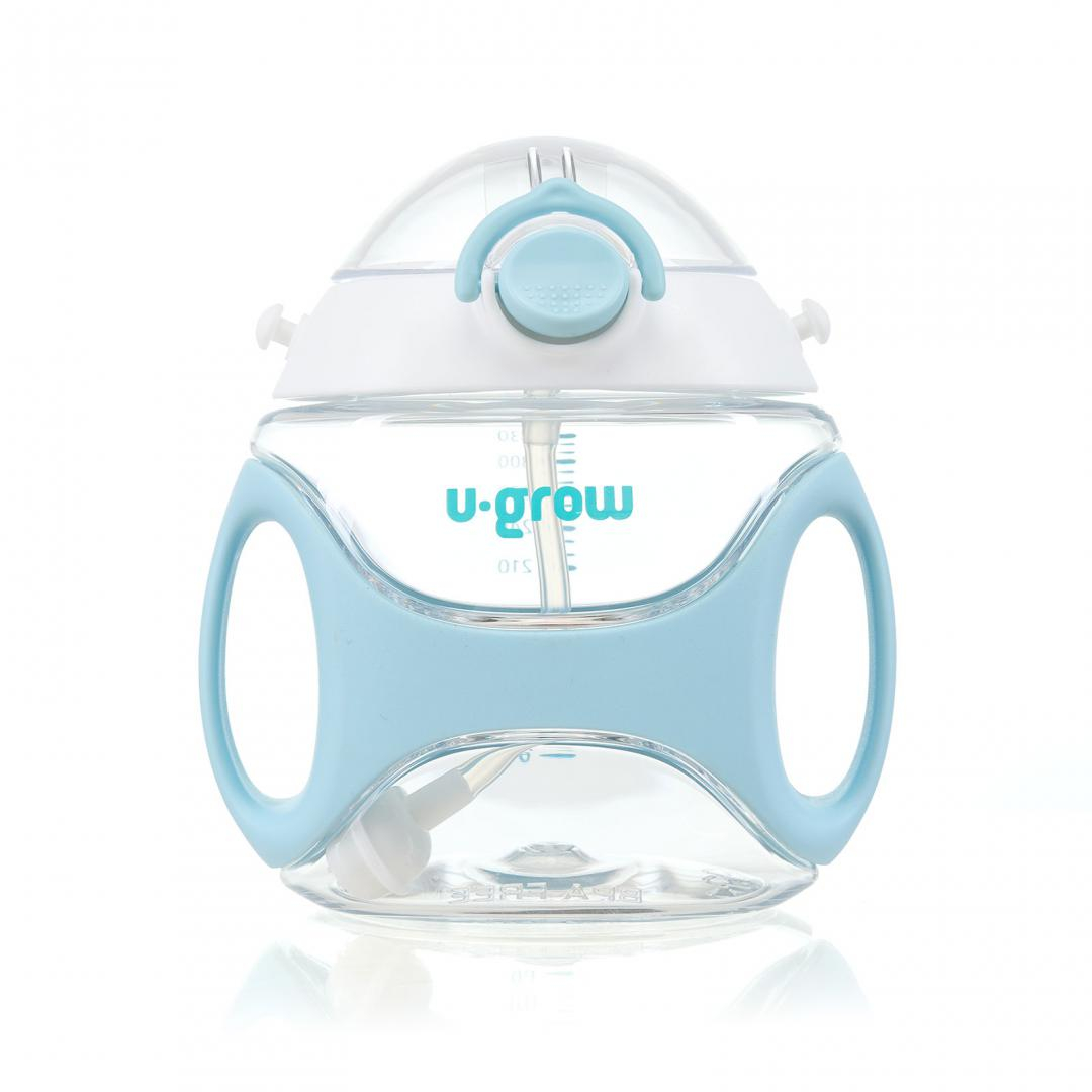 Pachet 3 in 1 cana 260 ml tritan cu 3 accesorii diferite pentru baut : tetina biberon, cioc , pai, blue, U-Grow