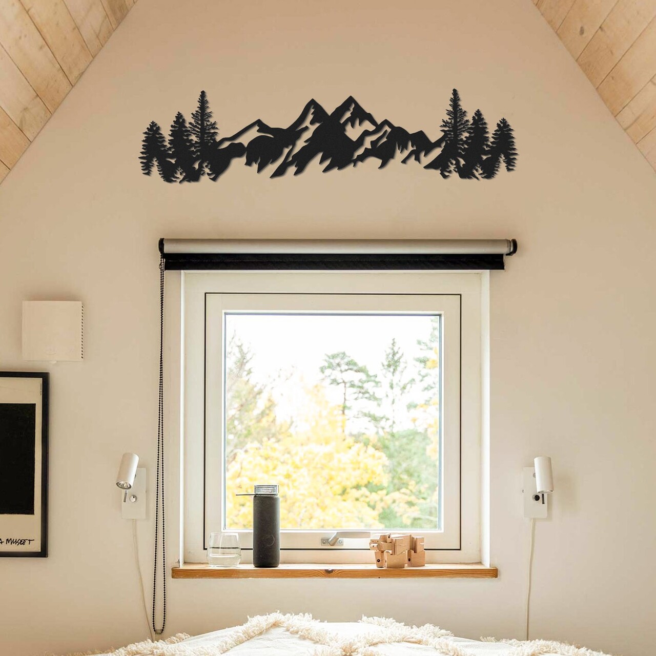 Decoratiune de perete, Mountains Metal Wall Art, Dimensiuni: 17 x 69 cm, Negru
