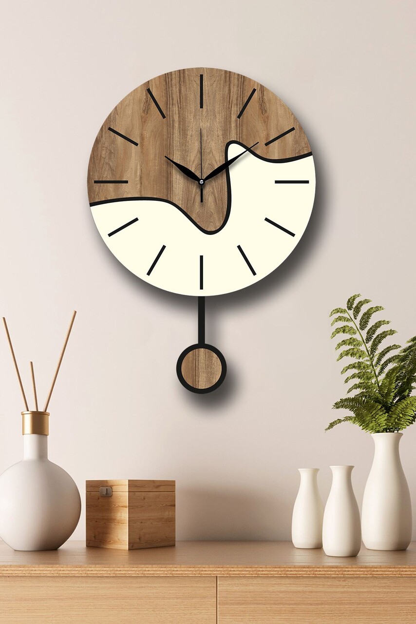 Ceas de perete decorativ, Vlnt109kr, Diametru: 39 cm, Maro/Crem