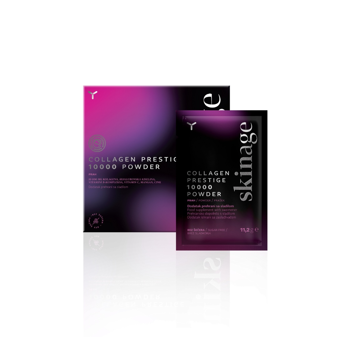 Colagen pudră 10000 mg pentru piele cu acid hialuronic și vitamina C – Skinage Collagen Prestige 20 plicuri