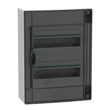 PrismaSet XS, Cofret cu montaj aparent, 2x18 Module, material plastic, usa fumurie, cu 1 bloc terminal