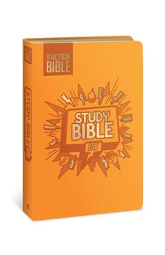 The Action Bible Study Bible Esv, Leathersoft, Orange, Full Color -