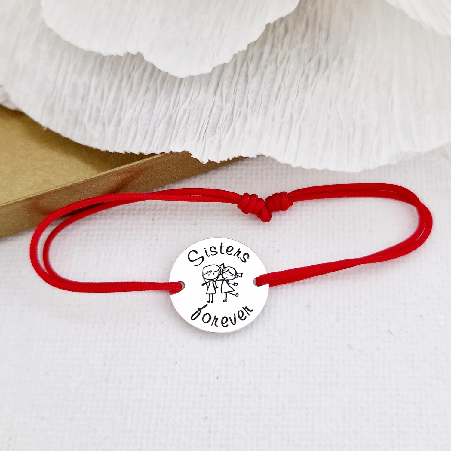 Bratara personalizata - Banut de 15 mm - Model gravat legatura surori/prietene - Argint 925 - snur reglabil