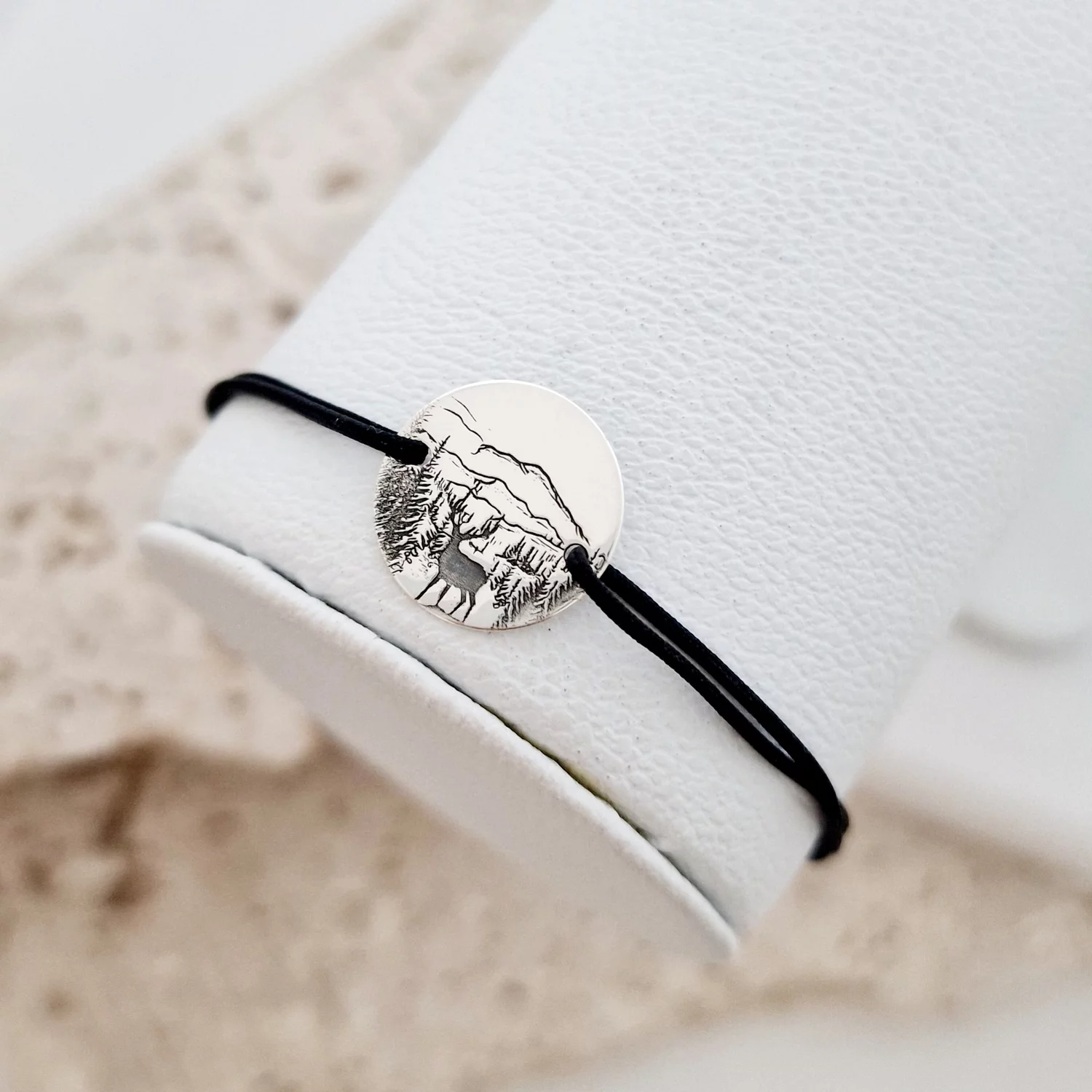 Bratara Cerb carpatin - Banut 15 mm - Argint 925 - Snur reglabil, diverse culori