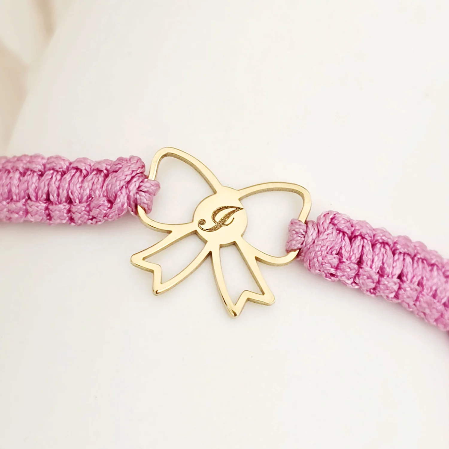 Bratara fundita decupata - Personalizata cu initiala - Argint 925 placat cu Aur Galben 18K - Snur impletit reglabil