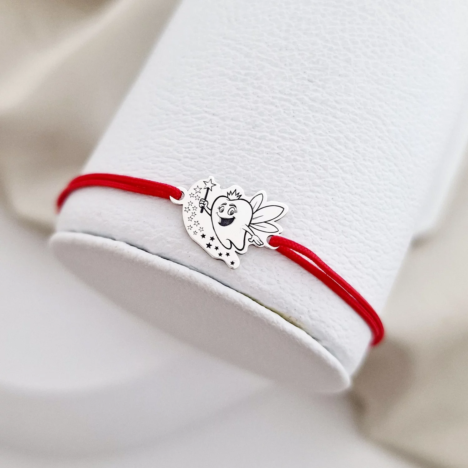 Bratara Zana maseluta - Dinte - Argint 925, snur rosu