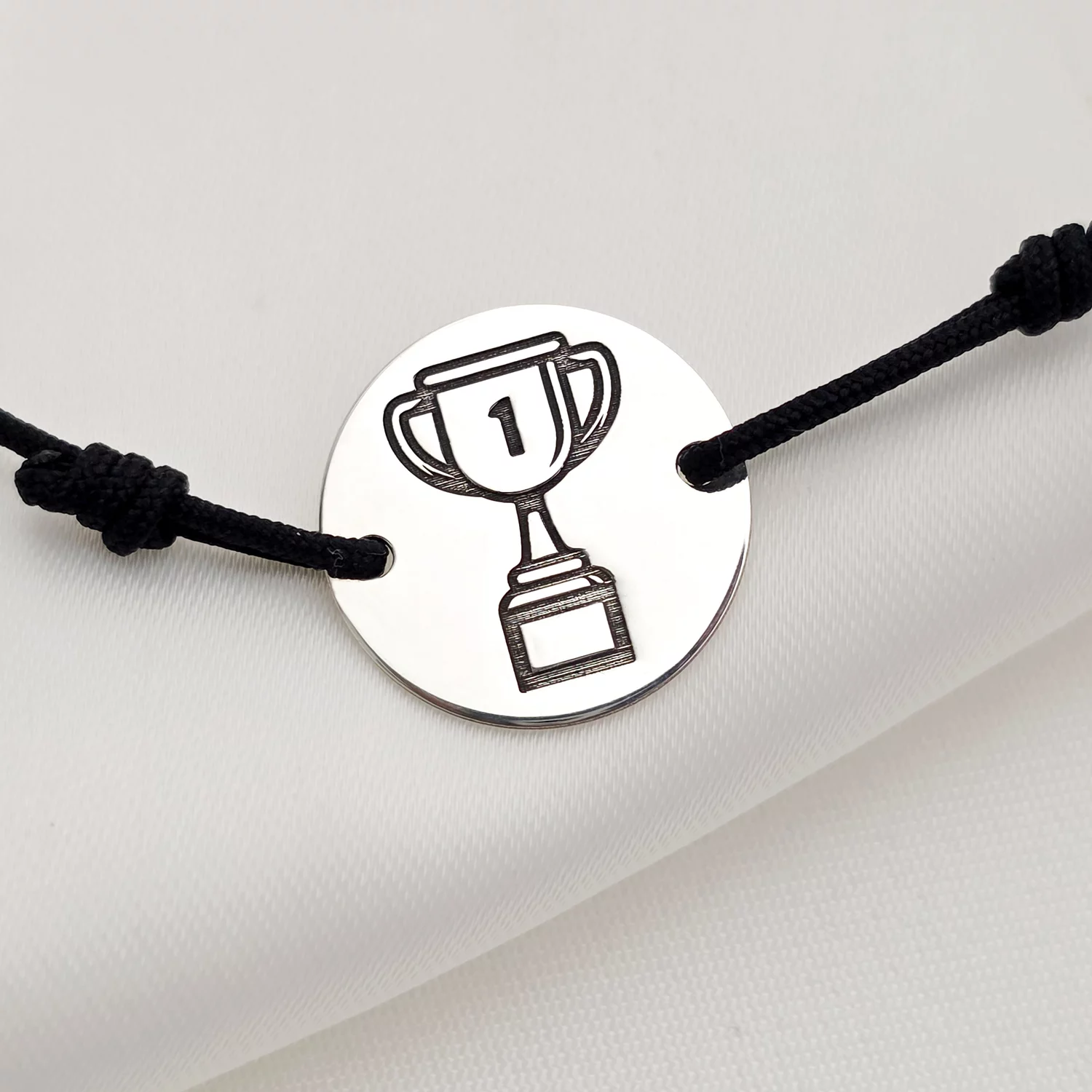 Bratara banut - Cupa gravata - Argint 925, snur negru