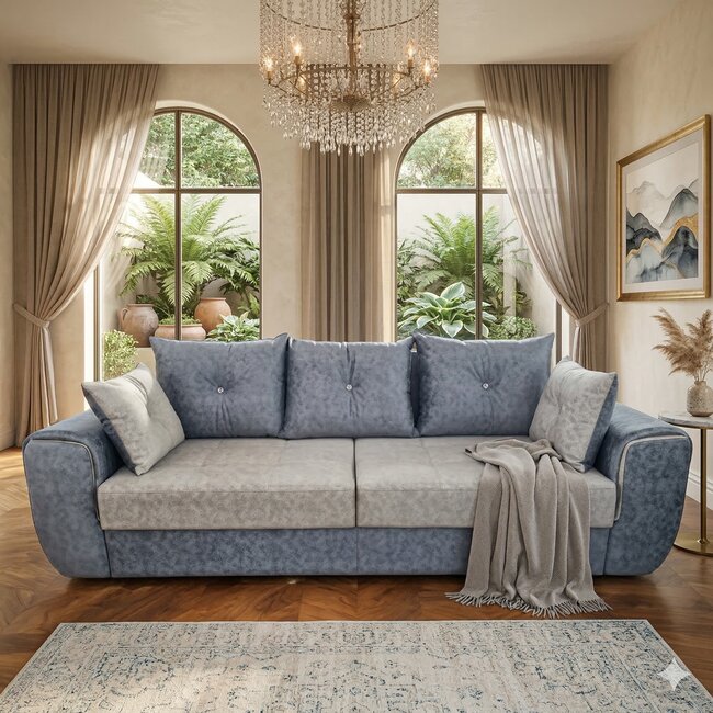Canapea Oslo extensibilă, culoare personalizabila - 240x100 cm, cu saltea din spumă poliuretanică și perne decorative