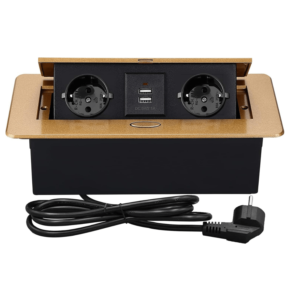 Priza electrica incastrabila ATOMKIT, 2 prize 16A, incarcator USB dublu 2.1A, buton pop-up, cablu 1.8m inclus, Maro
