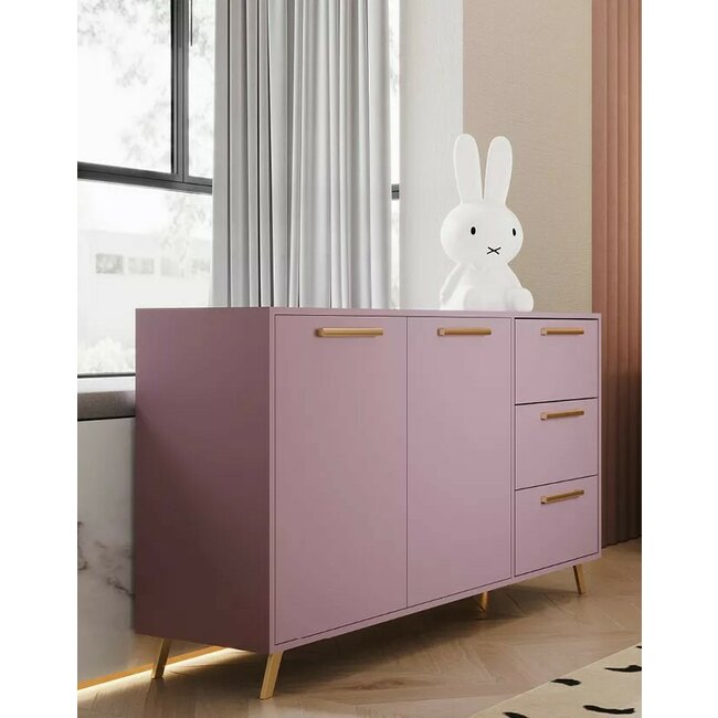 Comodă Bali 2, 2 uși și 3 sertare, design modern, PAL melaminat, 140x41x86 cm, roz