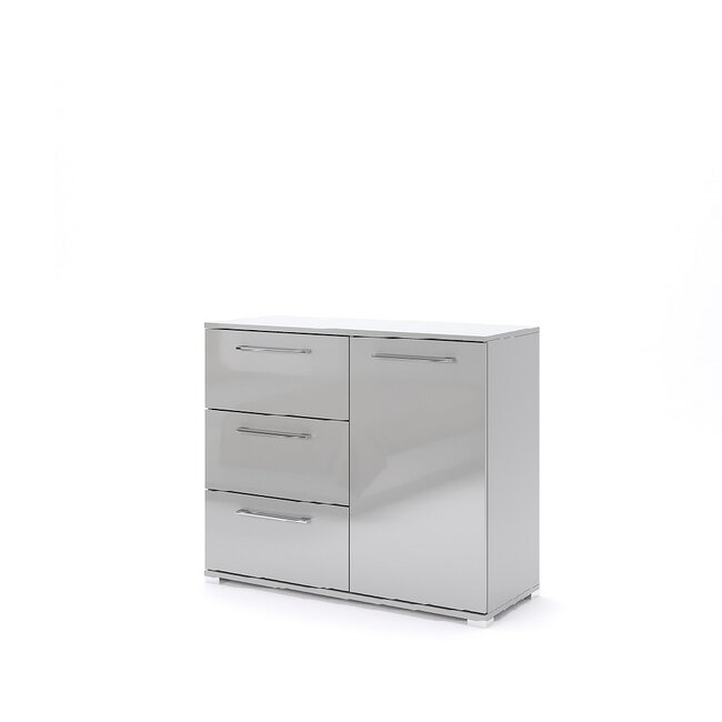 Comodă Megy 1U3S, design modern cu 1 ușă și 3 sertare, finisaj gri lucios, 81.1x100x40 cm