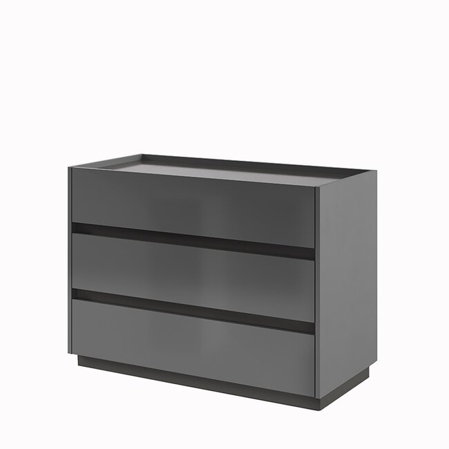 Comodă Teo, cu 3 sertare încăpătoare, design minimalist, material PAL și MDF, 72.5x100x46.5 cm, gri