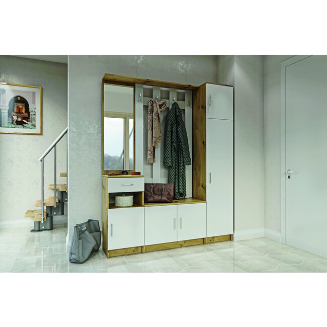 Set Cuier Idento, 5 Piese Funcționale, PAL Laminat și MDF, Dimensiuni Variabile, Alb Alpin