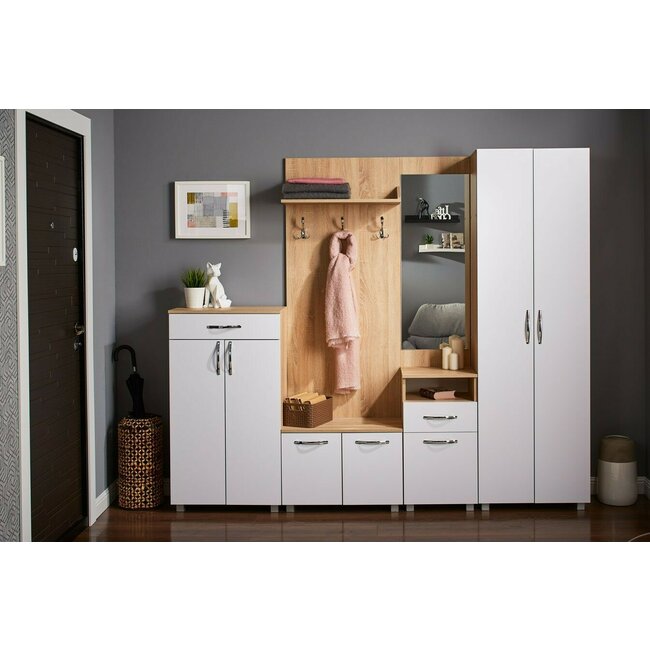 Hol Nika Sonoma, set mobilier hol cu dulap și pantofar, structură PAL melaminat, 220x90x45 cm, Sonoma