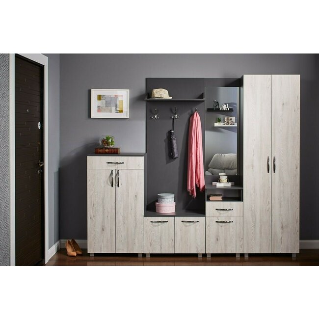 Hol Bruno, Modular Cu Dulap, Cuier Și Pantofar, PAL, 2.25 m, Grafit