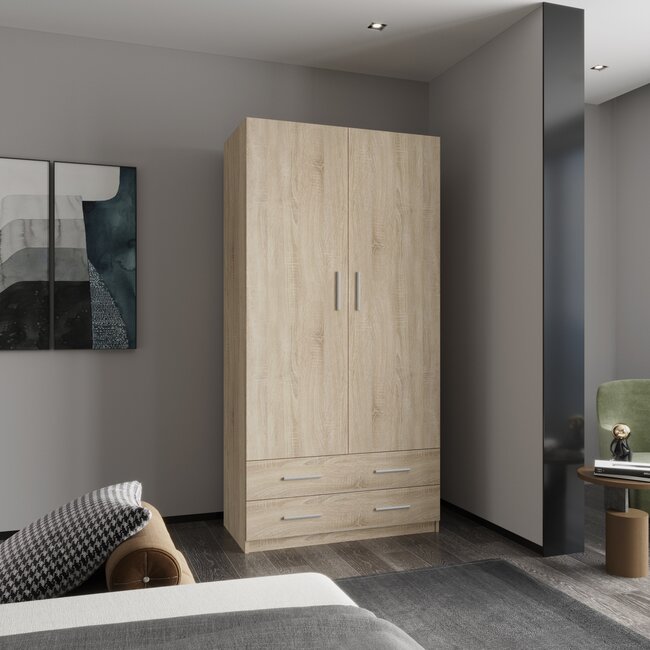 Dulap Wood 2D1S, 2 uși + 1 sertar, spațiu interior generos, structură PAL melaminat, 220x80x50 cm, personalizabil