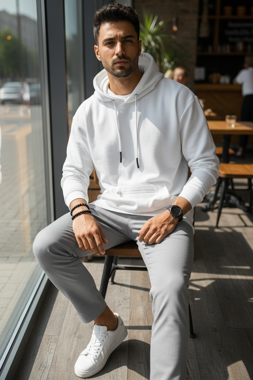 Hanorac barbati alb slim fit A8431 D4-5.4