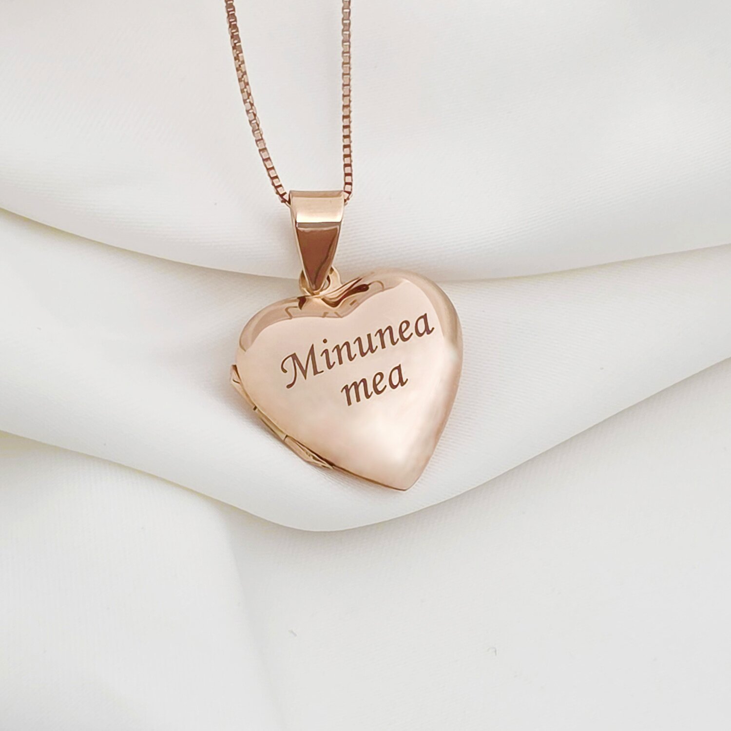 Lantisor cu medalion inima 20 mm cu poza in interior - Gravura personalizata - Argint 925 placat cu Aur Roz 18K