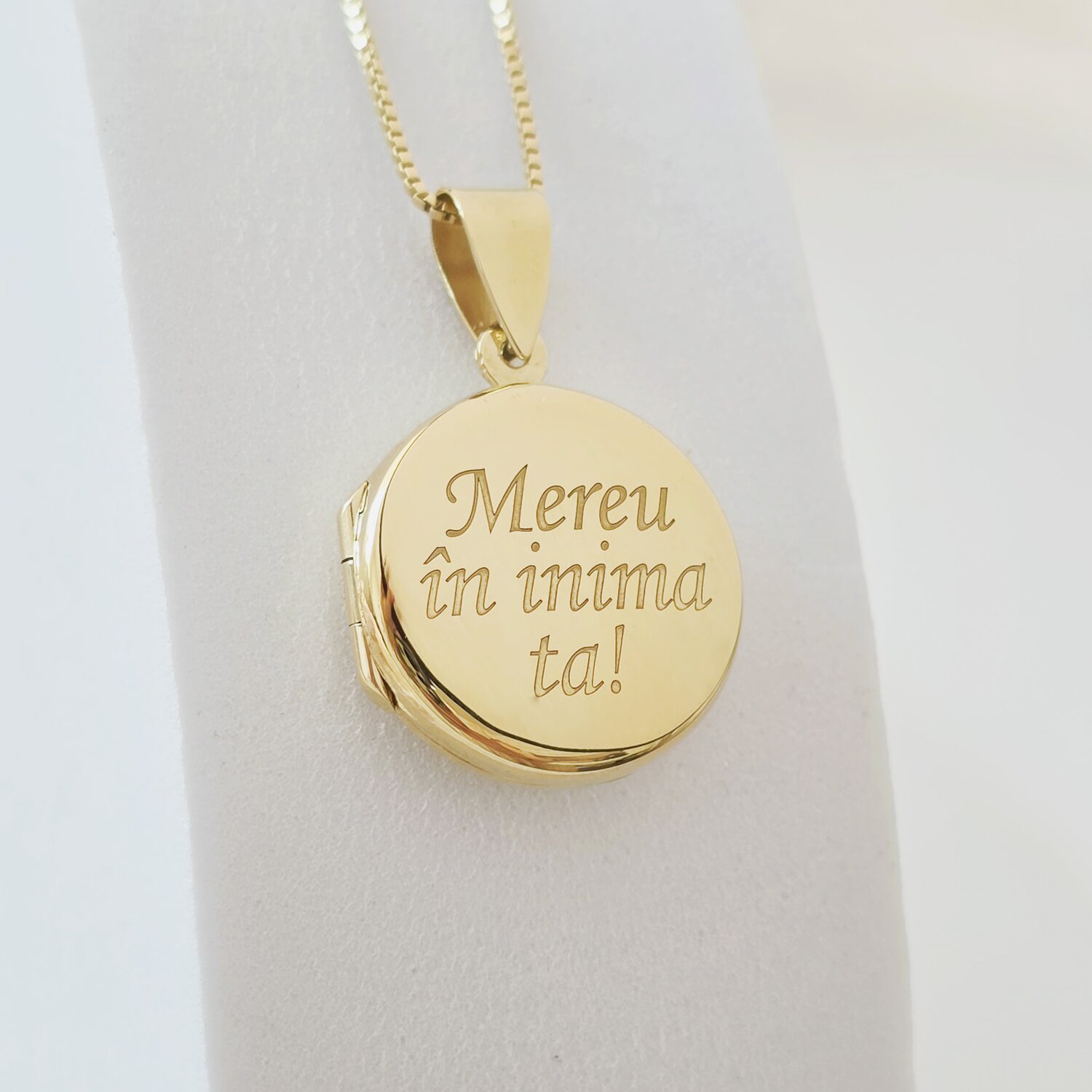Lantisor cu medalion rotund 18 mm cu poza in interior - Gravura personalizata - Argint 925 placat cu Aur Galben 18K