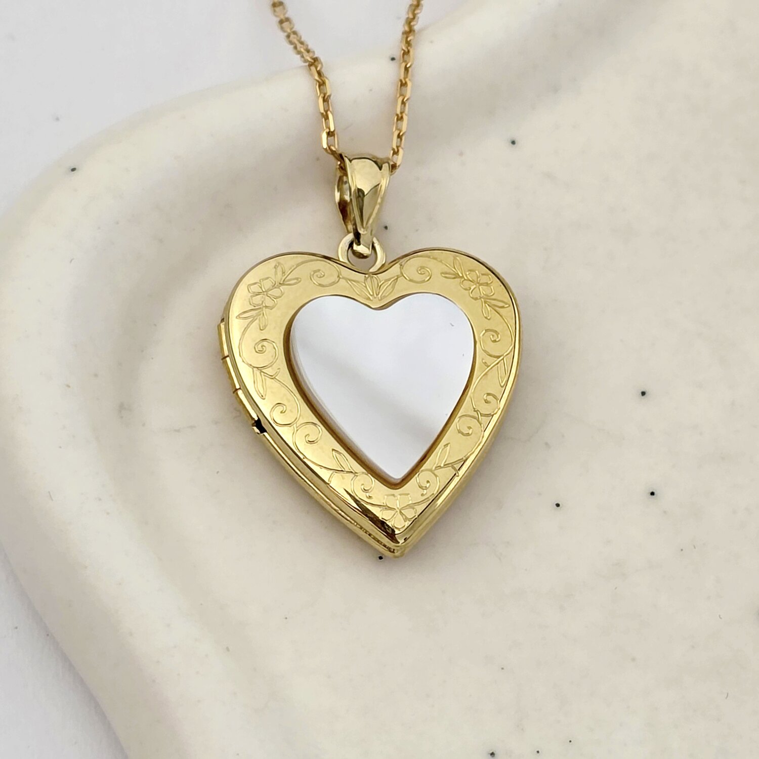 Medalion inima cu poze in interior - Mother of Pearl - Argint 925 placat cu Aur Galben 18K