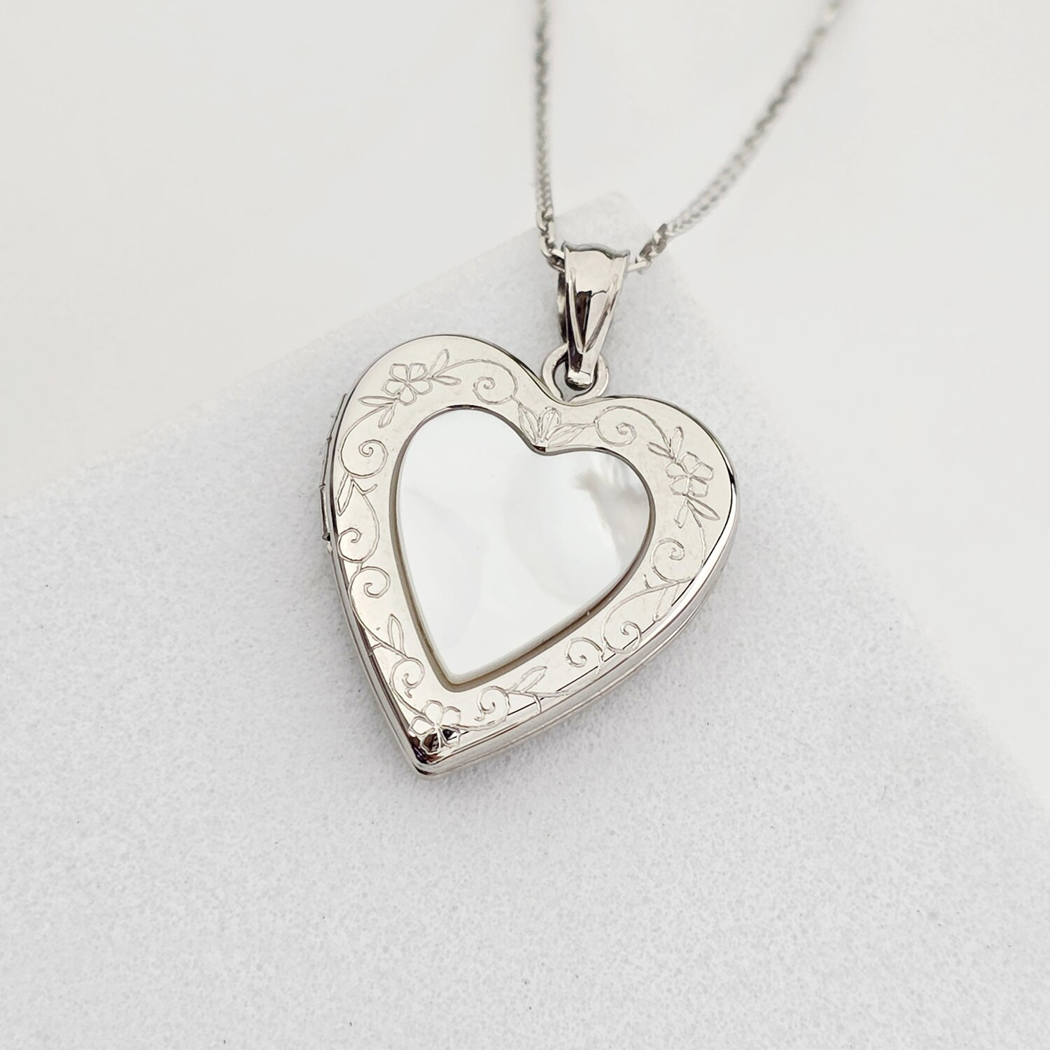 Medalion inima cu poze in interior - Mother of Pearl - Argint 925 Rodiat